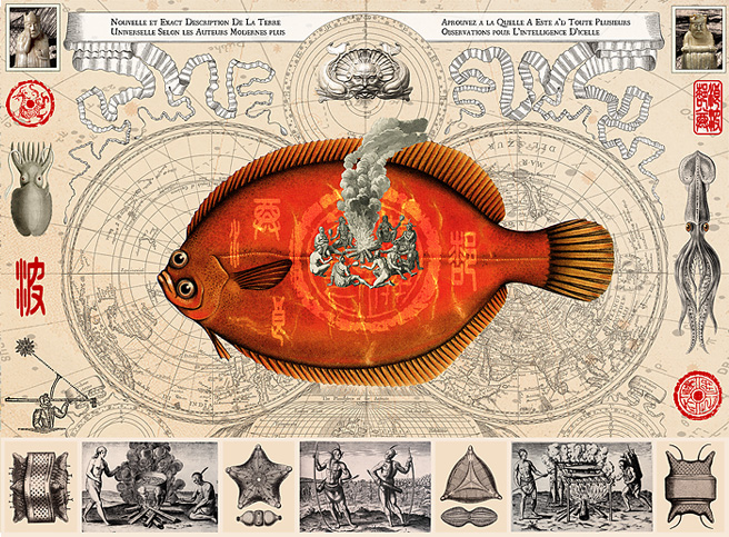 A series of new works inspired by maps, myths, the sea and marine life. The key imagery is digitally printed on fine art paper then in most cases hand-coloured by the artist and limited to an edition of 20 copies.